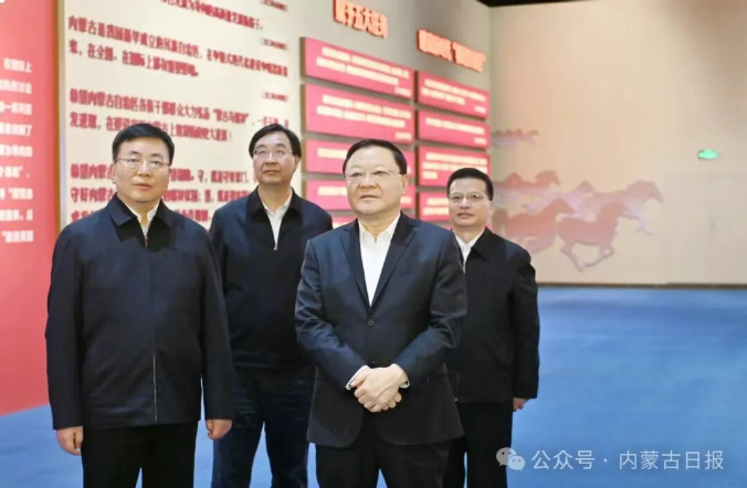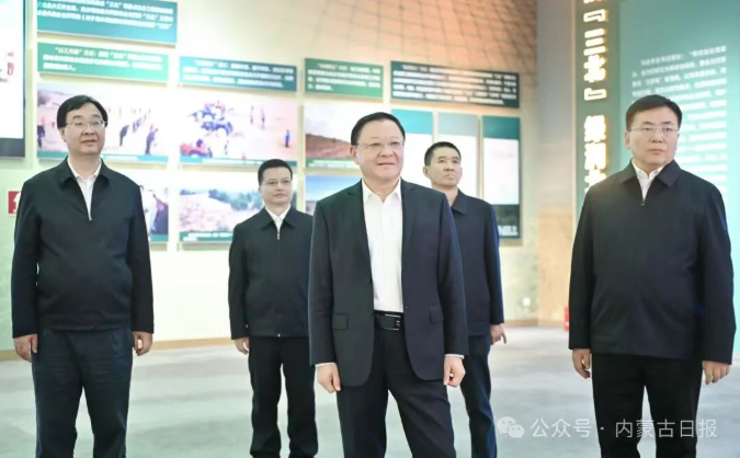 10月7日,自治区党委书记、人大常委会党组书记王伟中来到内蒙古展览馆,分别参观“牢记嘱托 感恩奋进——办好两件大事 奋力书写中国式现代化内蒙古新篇章”、“绿色长城 生态奇迹——内蒙古防沙治沙和‘三北’工程攻坚战”主题展。自治区党委副书记、自治区人民政府党组书记、呼和浩特市委书记包钢参加。